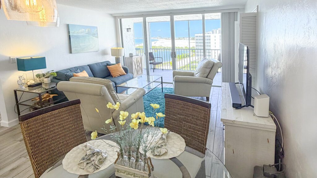 Located at the southern end of Estero Island near Santini Plaza, this vacation rental style property features residential living, two-bedrooms, beautiful balcony views, walkable shopping & beach access, as well as recreation & sauna amenities.