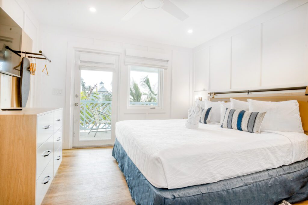 Small beach-town meets high-style in our upscale and spacious Offshore King Studio Suite. This studio accommodation features poolside patio or private balcony and views of the surrounding gardens along with amendities like a King Bed, Sofa-Sleeper, modern decor, refrigerator, mini fridge and coffee/tea maker.